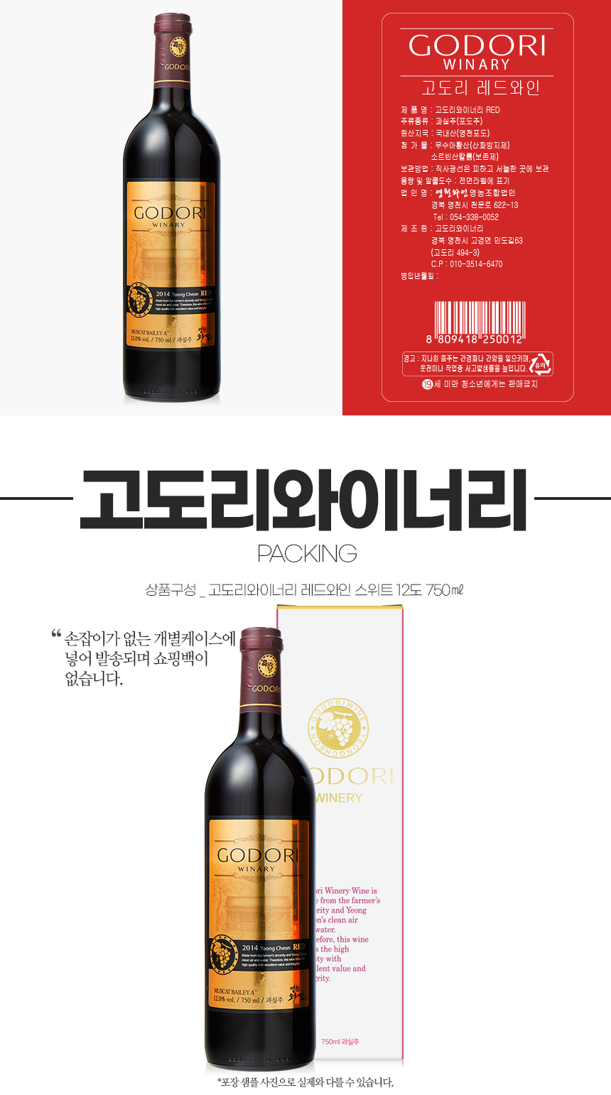 이미지 확대보기술마켓 고도리와이너리 레드와인 스위트 12도 750ml