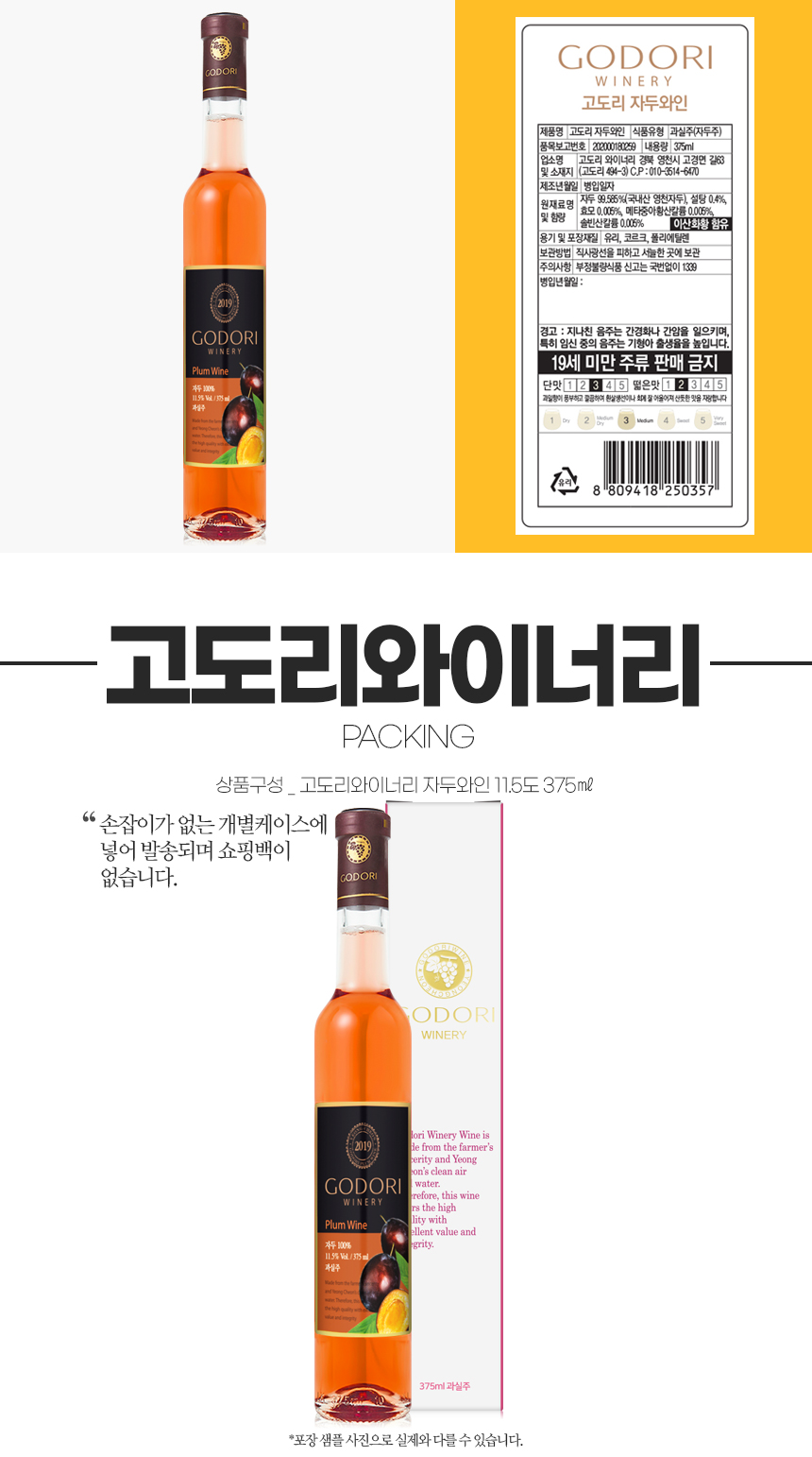 이미지 확대보기술마켓 고도리와이너리 자두 와인 11.5도 375ml